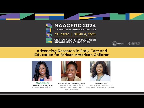 Three presentations will be shared within this NAACFRC 2024 CER Conference: CER Pathways to Equitable Programs and Policies program session: 1) Studying an Equity-Focused Universal Preschool Program: Lessons from a Research Partnership 2) Exploring the Experiences of Black, Low-Income Parents’ Access to Quality Early Childhood Education 3) Infusing child development science into the ministry activities of clergy in predominantly Black congregations
